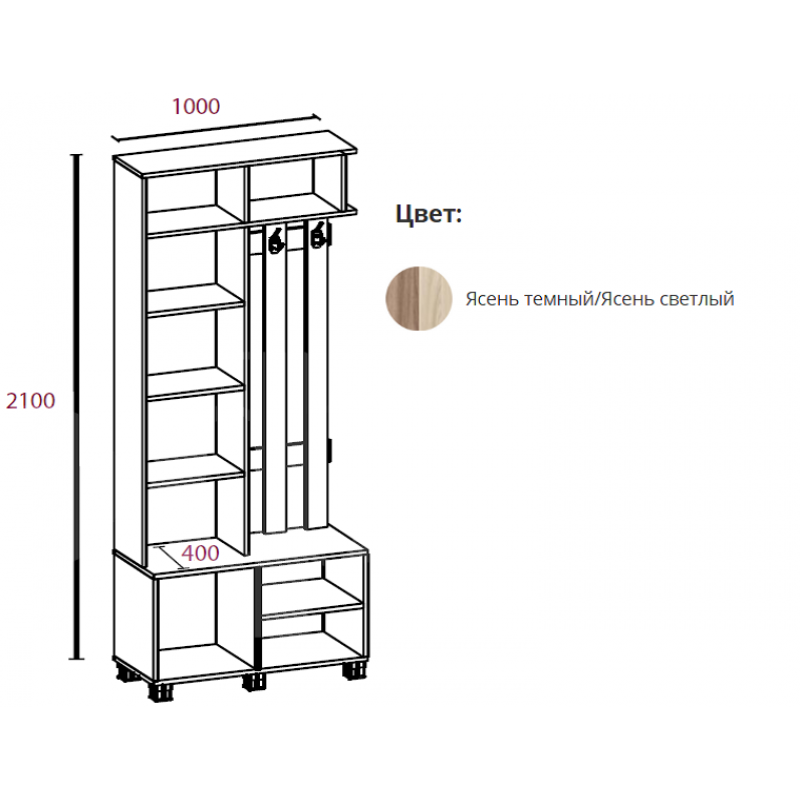 код 123340Размер: 1000х400х2100 мм. Материал: ЛДСП.
