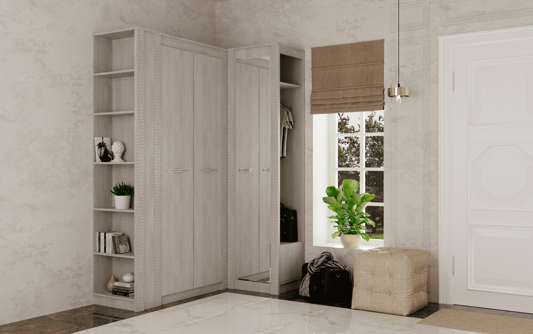 Современная встроенная прихожая со шкафом