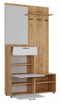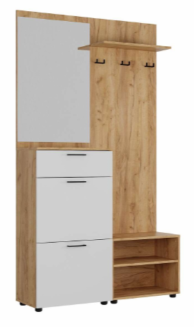 В состав комплекта входит: вешалка, тумба, шкаф, тумба под обувь.