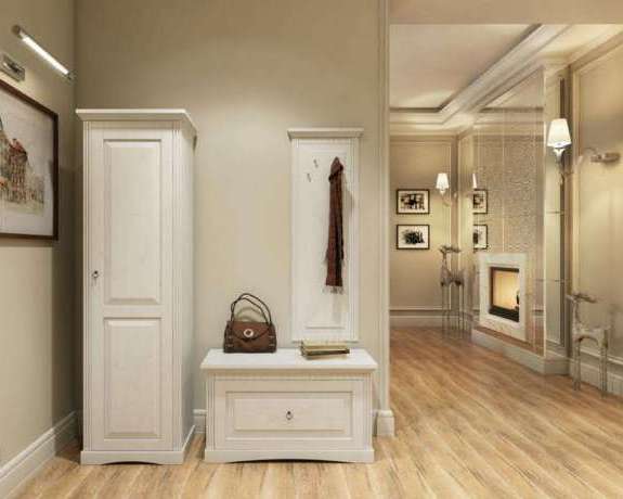 Светлая однотонная прихожая из ЛДСП. 5 модулей в наборе.