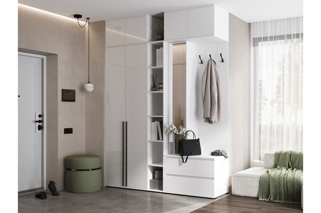 Прихожая «Норд-1» Белый / Белый Глянец (МИФ)