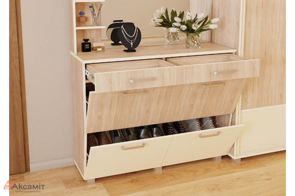 - Оливия 29 комод-обувница.Габариты (ШхГхВ) в мм - 1100x380x1050