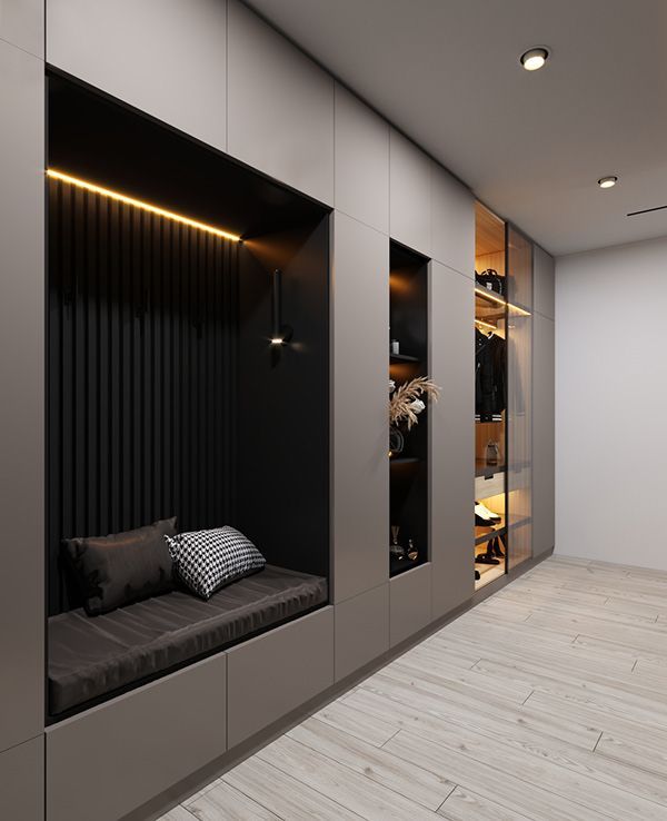 Состоит из отдельностоящих модулей: шкафа+ вешалки+ зеркала и обувниц.