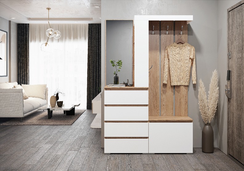 Прихожая «Пр 01 Хелен» крафт золотой/белый шагрень