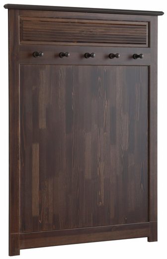 Широкая настенная вешалка в прихожую в виде панели с металлическими крючками.