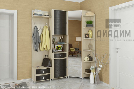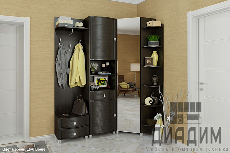 В состав комплекта входит: вешалка, тумба, шкаф, тумба под обувь.