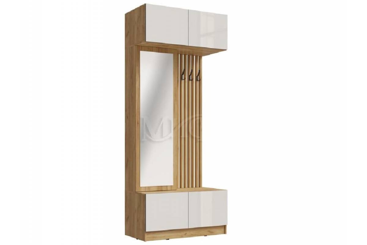 Цвет прихожей: Дуб Крафт золотой - Белый глянец.