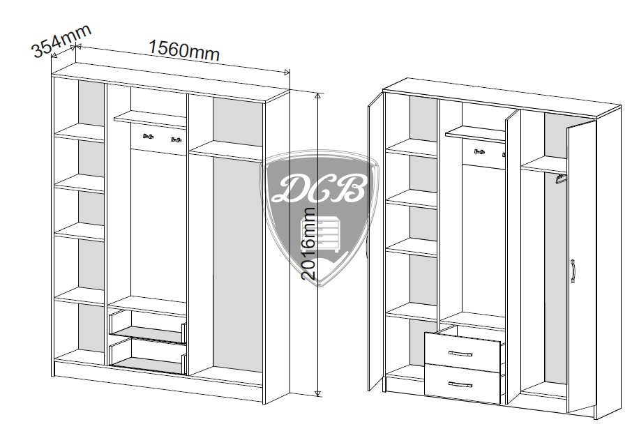 Размер (ШхГхВ): 1600х362х2087 мм. Материал: ЛДСП, МДФ.