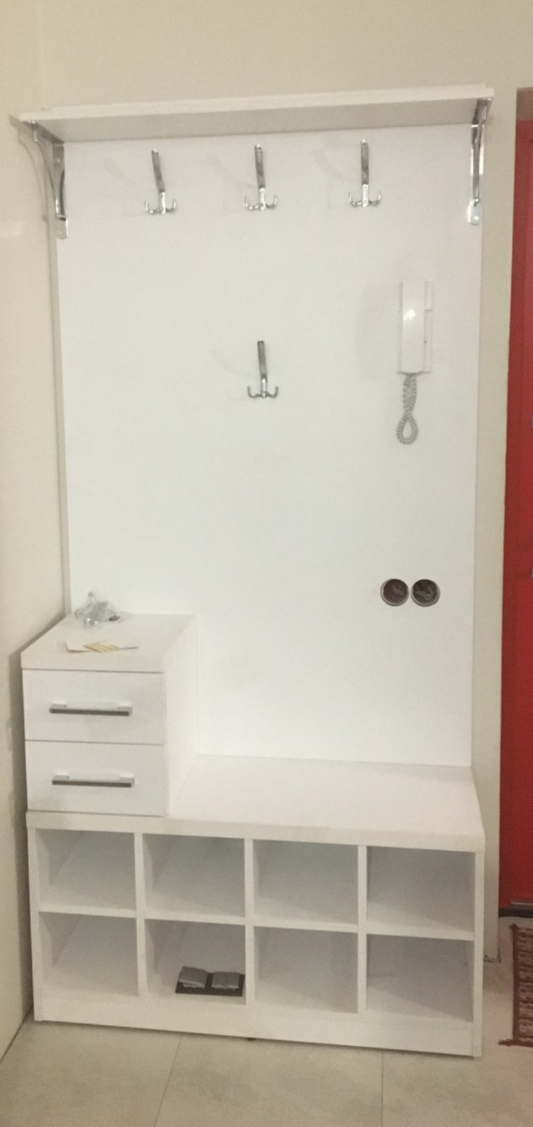 Обувница со съемной полкой внутри и настенная вешалка в одном цветовом решении.