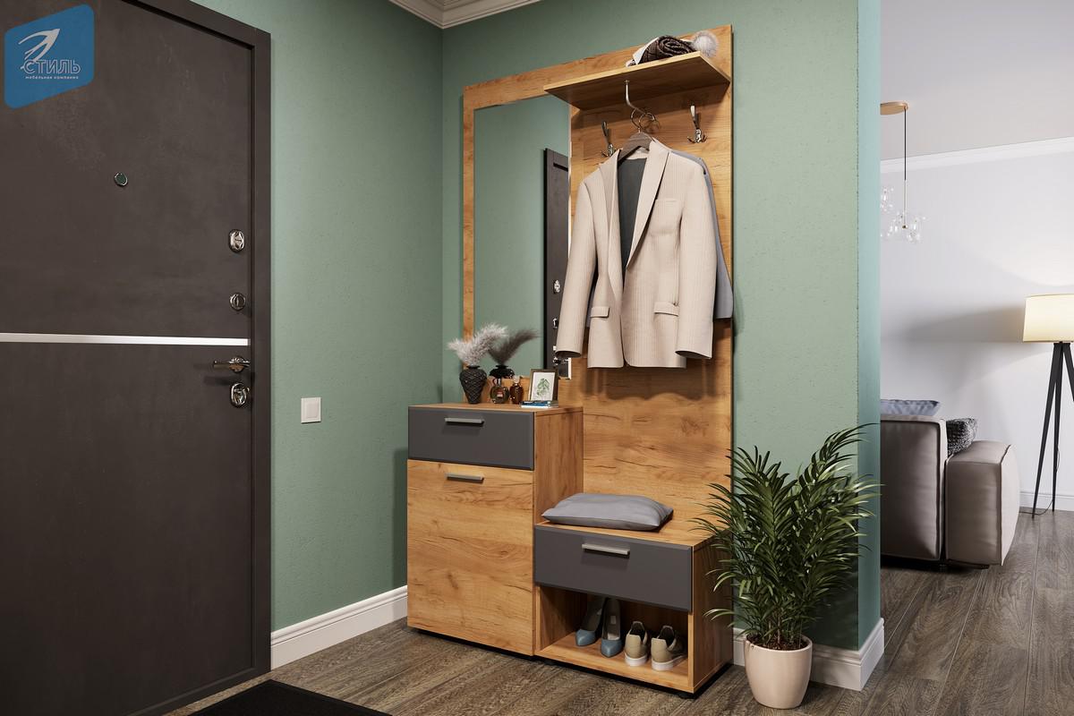Прихожая «Сафари» со шкафом (дуб крафт золотой/графит софт)
