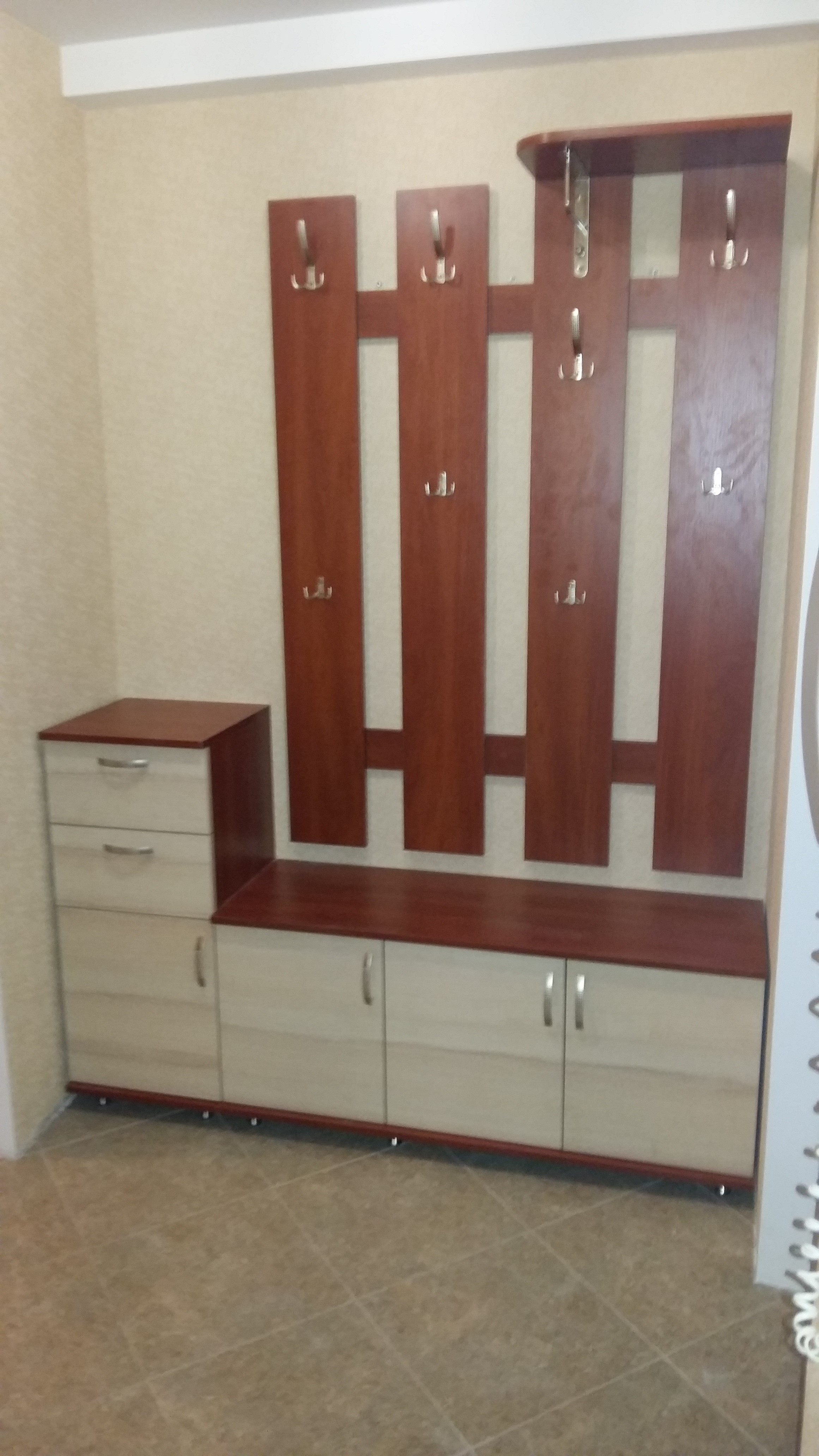 Обувница, зеркало, вешалка с обувницей, распашной 2 ств шкаф, открытые угловые полки.