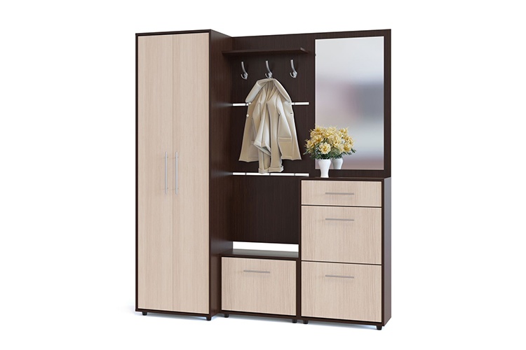 Прихожая «ТП-1 + ТП-2 + ПЗ-3 + ВШ-5.1 + ШО-1» корпус венге / фасад беленый дуб