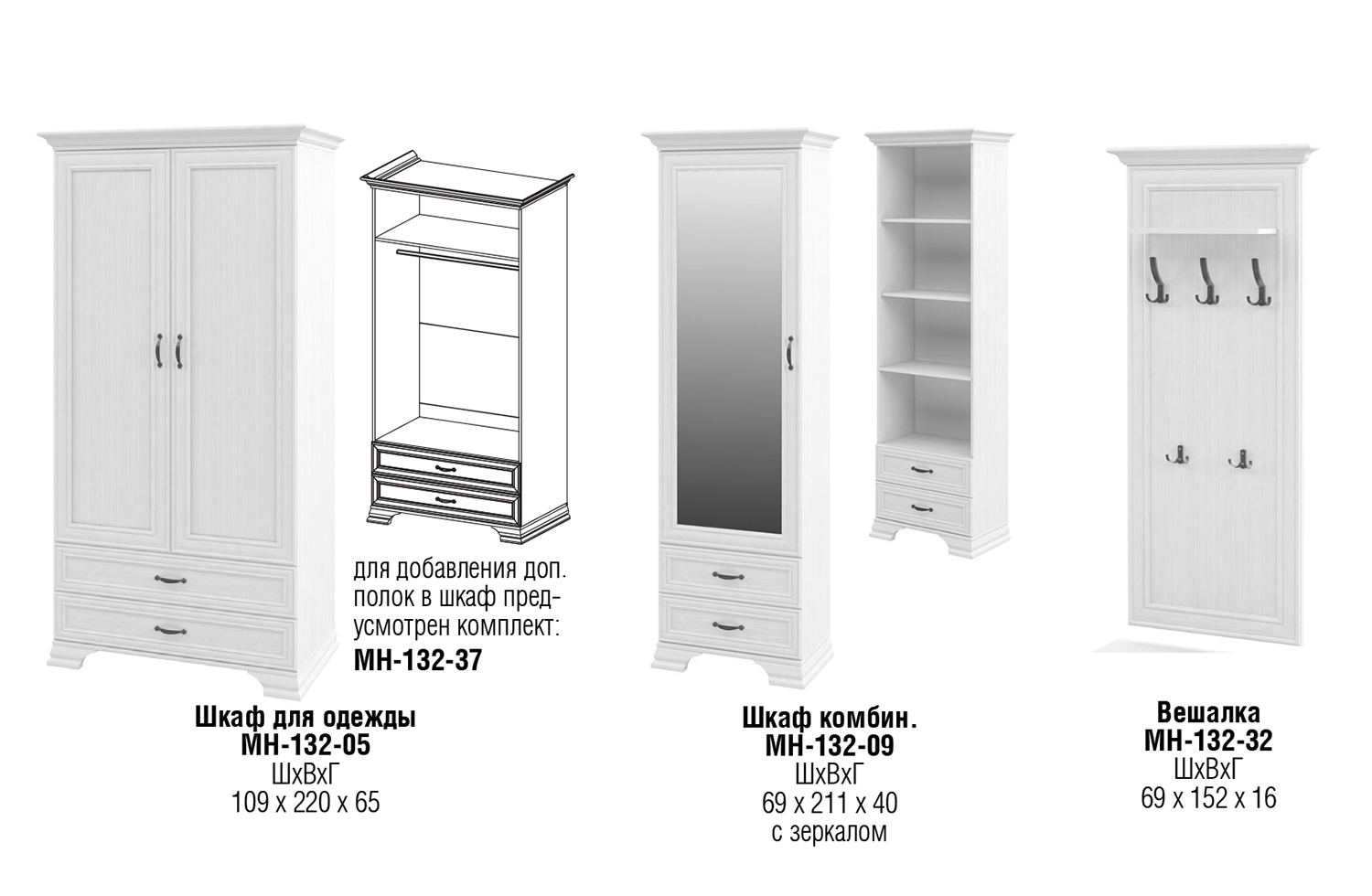 - Вешалка МН-132-32; ШхВхГ: 690х1520х160 мм.