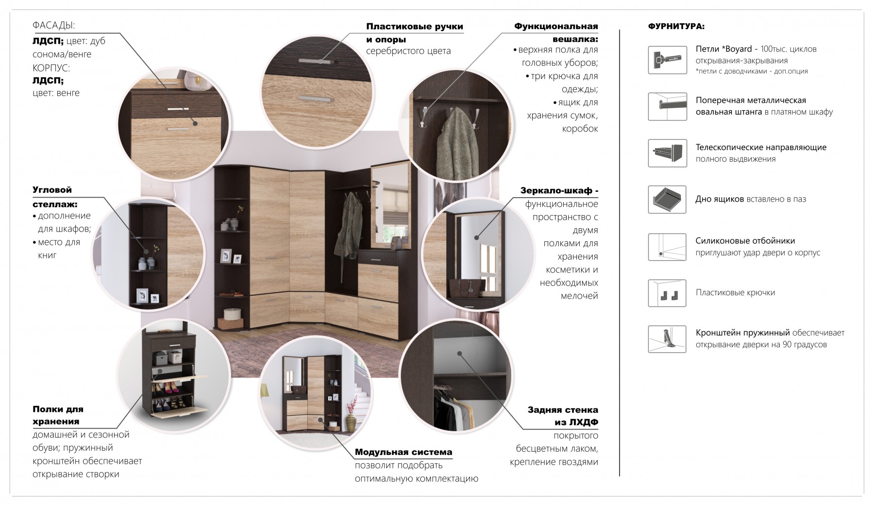 Комплект мебели в прихожую «Лара» дуб сонома, вариант 1