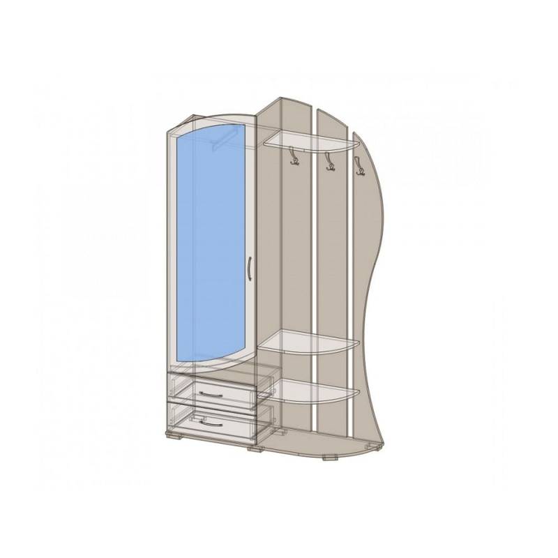 Модульная функциональная система в прихожую. Материал: ЛДСП, зеркало с фацетом.