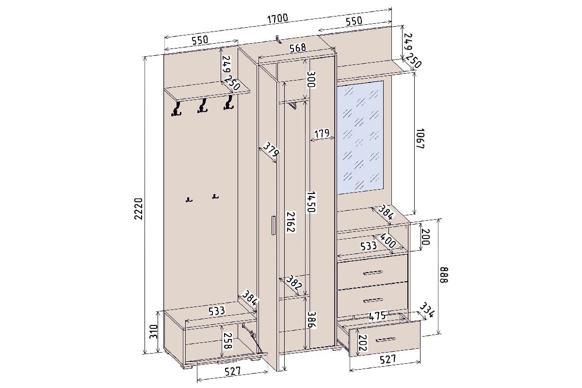 код 155994Размер: 1700х400х2220 мм. Материал: ЛДСП.
