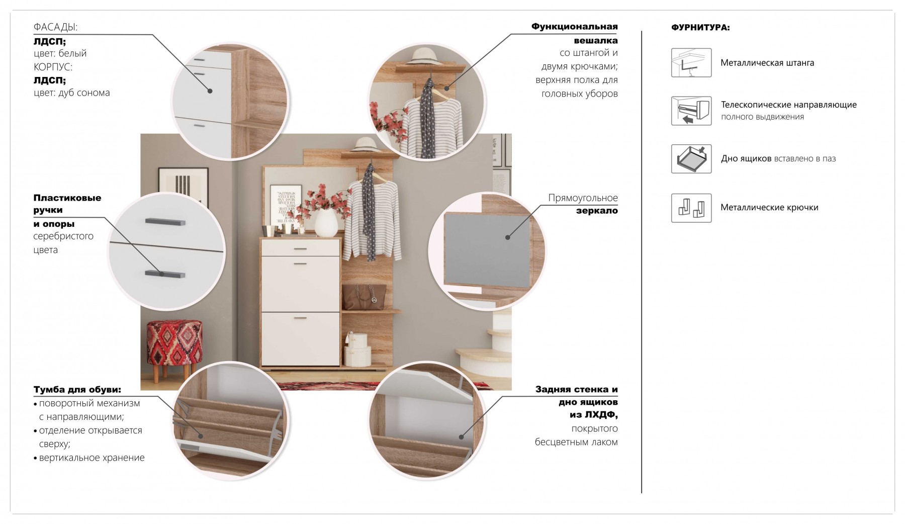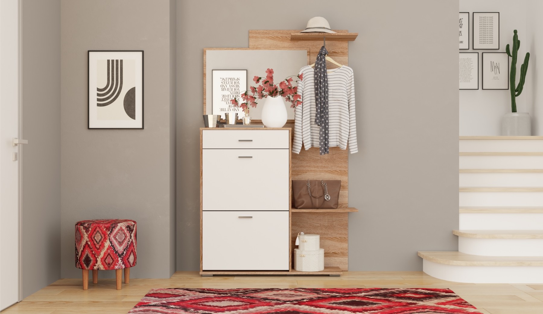 Обувница со съемной полкой внутри и настенная вешалка в одном цветовом решении.