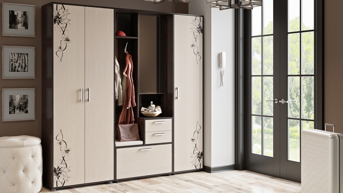 В комплект входит пенал с ящиками и вешалка с обувницей.