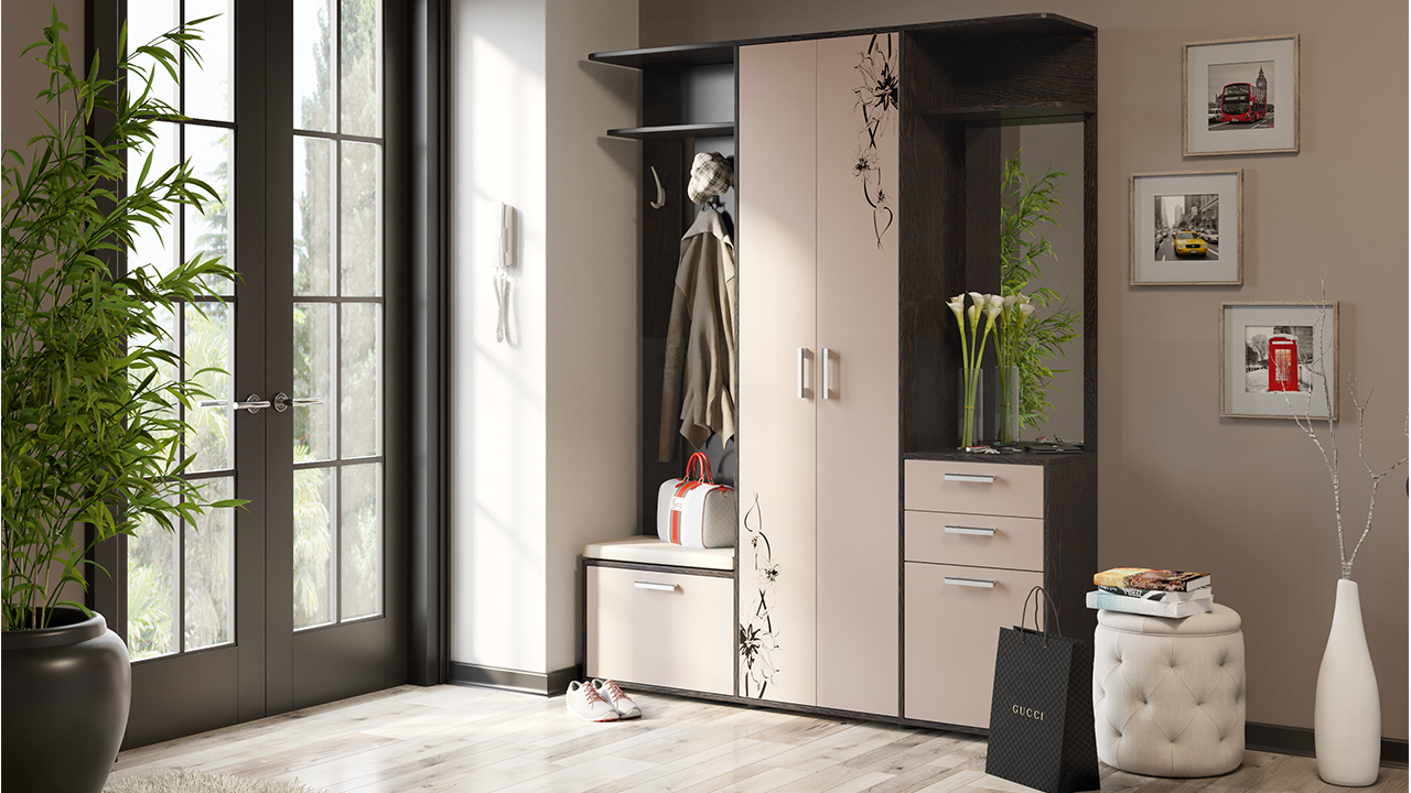 Прихожая из двух модульных элементов в цвете темного дуба венге.
