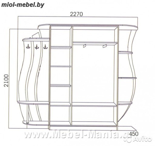 Размер (ШхВхГ): 2500х2152х370 мм. Материал: ЛДСП, зеркало с фацетом.