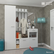 код 111023В наборе настенная вешалка с крючками, обувница, комод, зеркало и однодверный шкаф.