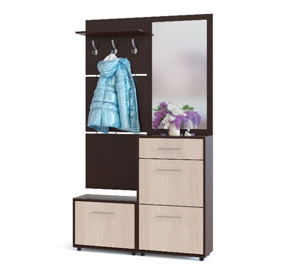 Обувница со съемной полкой внутри и настенная вешалка в одном цветовом решении.