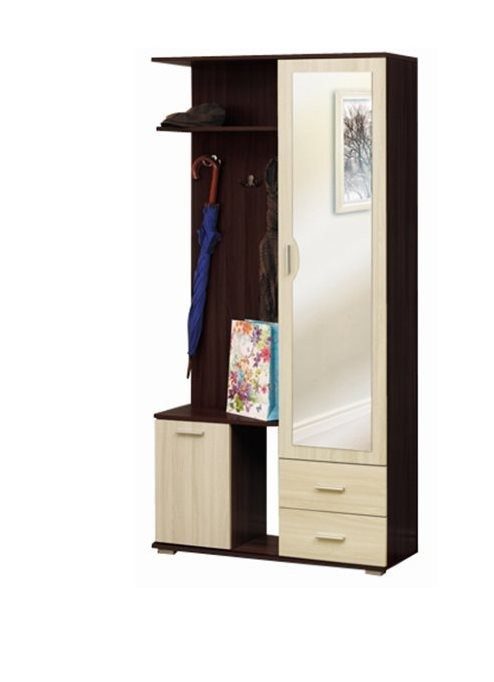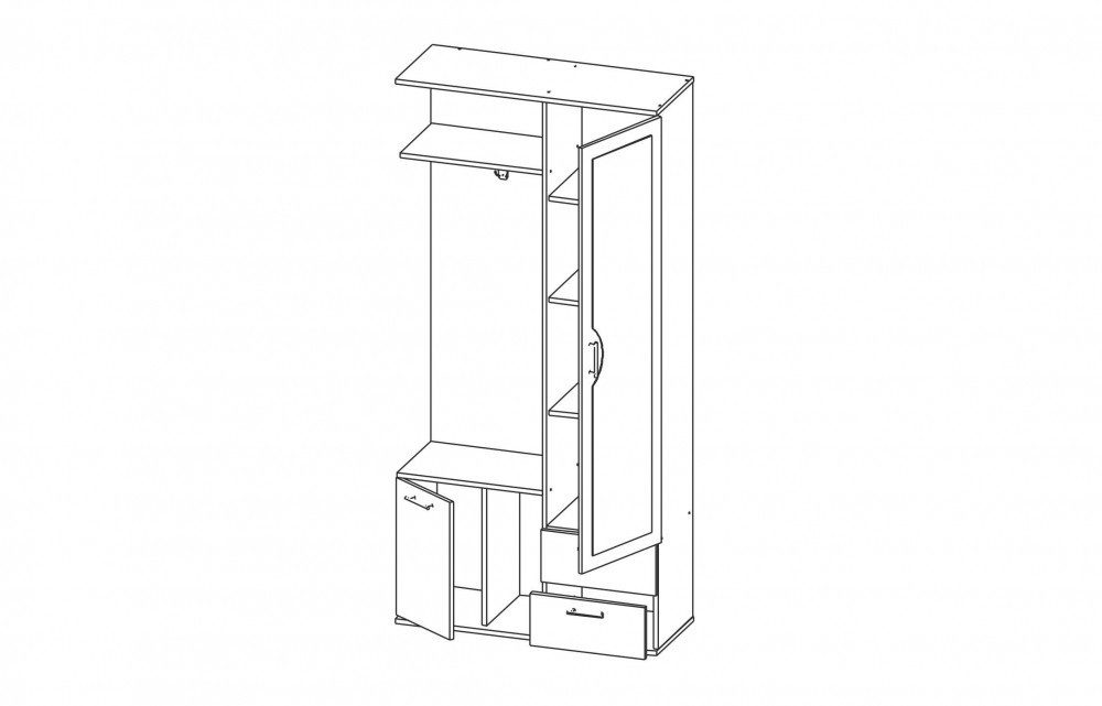 В состав комплекта входит: вешалка, тумба, шкаф, тумба под обувь.