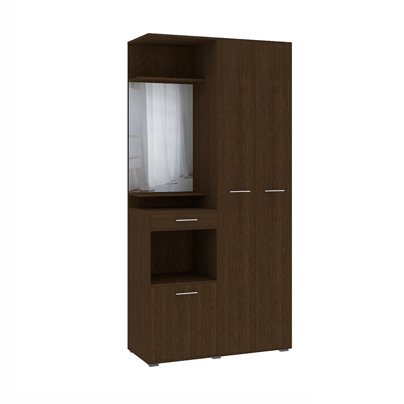 код 120275Небольшая прихожая, включающая в себя три модуля: шкаф, обувницу и зеркало. Цвет: венге.