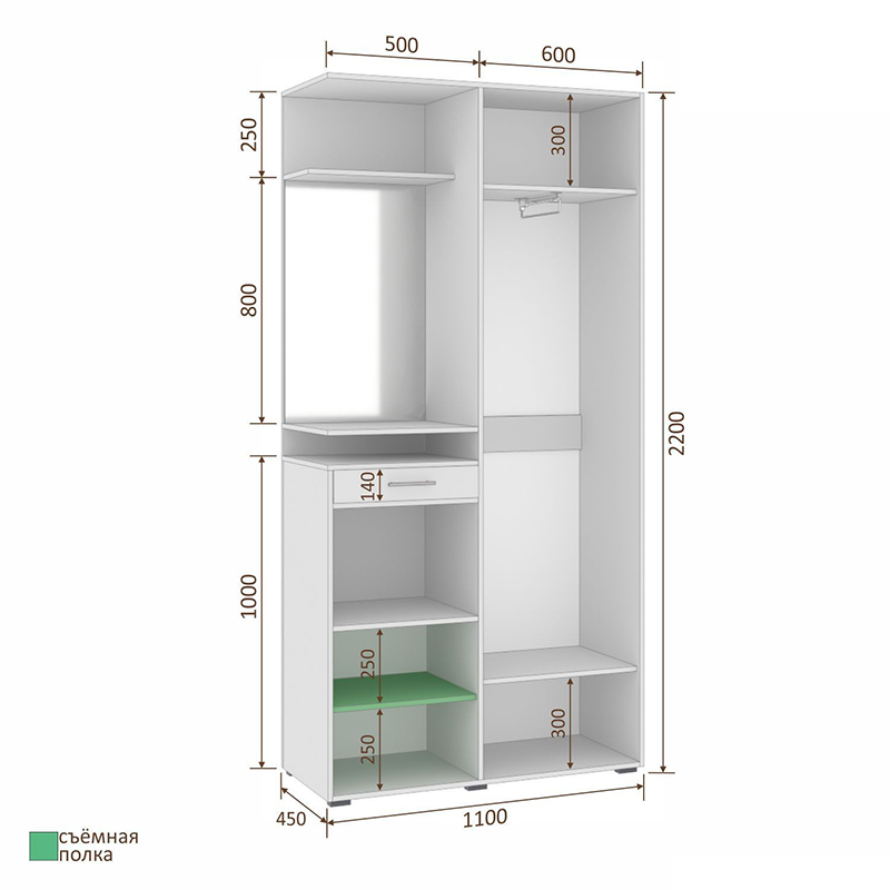 - Шкаф в прихожую ЛАРА ШП2-45 с одним отделением для верхней одежды, выдвижной вешалкой, нижней полкой и антресолью.