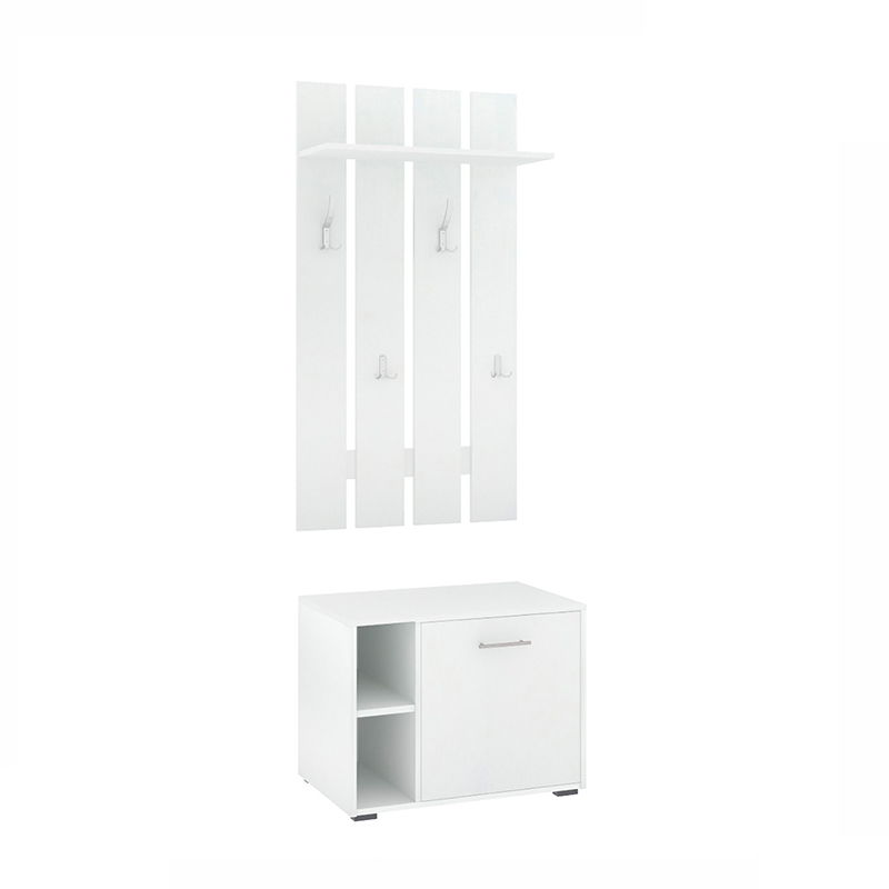 код 120210Комплект мебели для прихожей состоит из обувной тумбы и настенной панели с крючками.