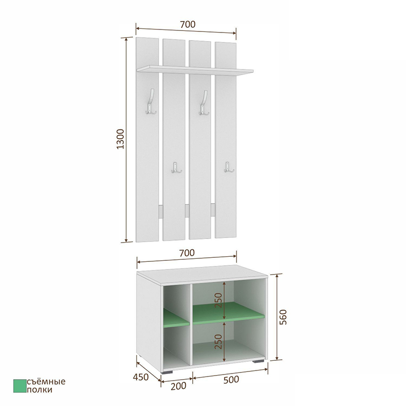 - Вешалка для верхней одежды ЛАРА ВП2 с верхней полкой. Габариты (ШхВ): 700 х 1300 мм.