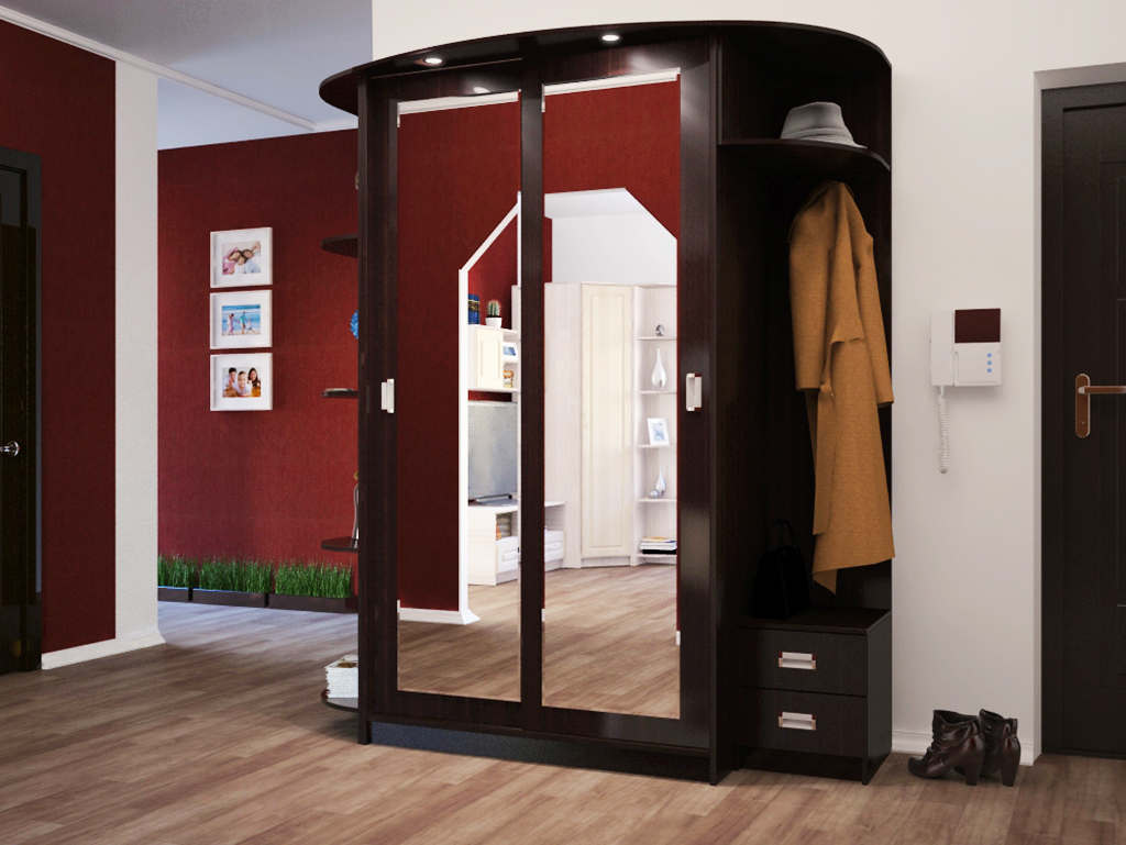 В состав комплекта входит: вешалка, тумба, шкаф, тумба под обувь.