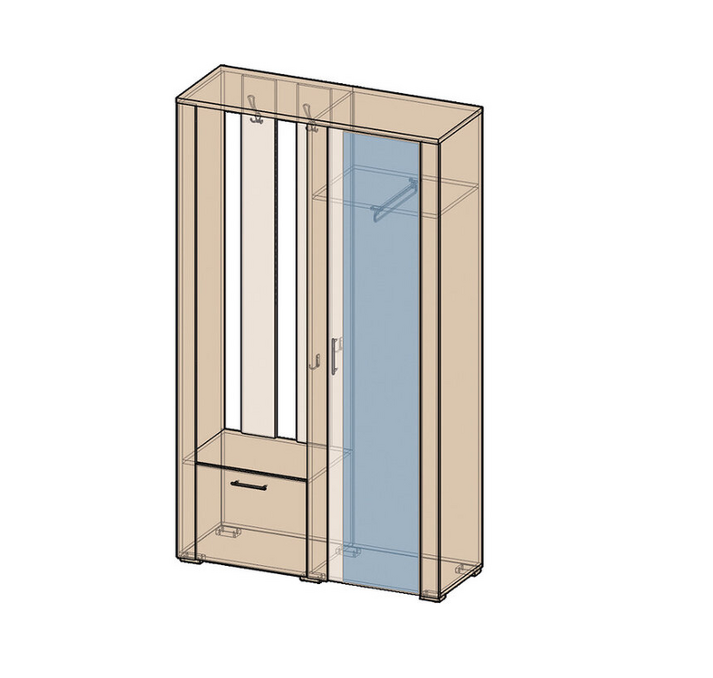 Размер (ШхВхГ): 1120х2100х400 мм. Материал: ЛДСП, зеркало.