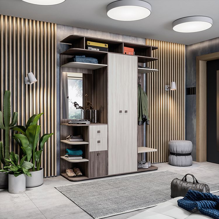 код 116412Готовая прихожая в комбинированном исполнении. Открытые и закрытые полки.