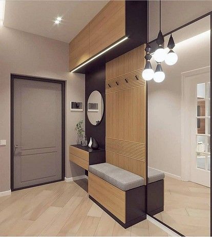 код 112703Зеркало, подвесная тумба, тумба для обуви с мягкой сидушкой, вешалка, антресоль с врезной подсветкой.