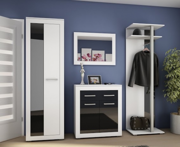 Большой распашной шкаф, тумба с выдвижными ящиками, навесная полка. Глянцевые фасады.