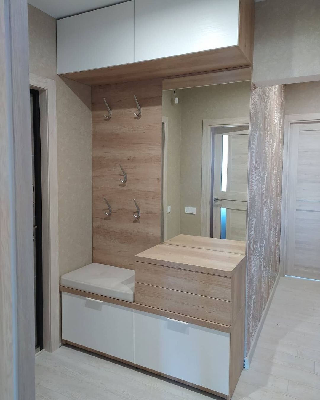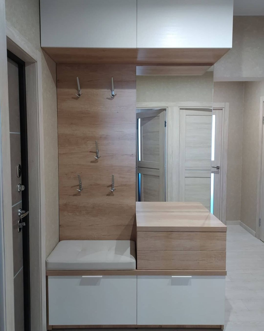 Светлая однотонная прихожая из ЛДСП. 5 модулей в наборе.