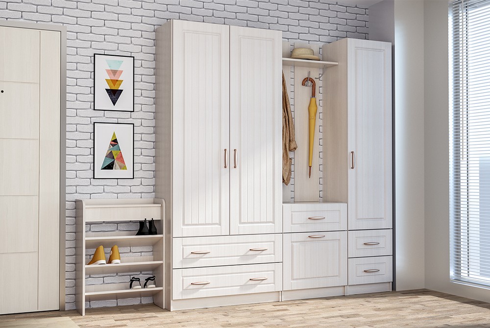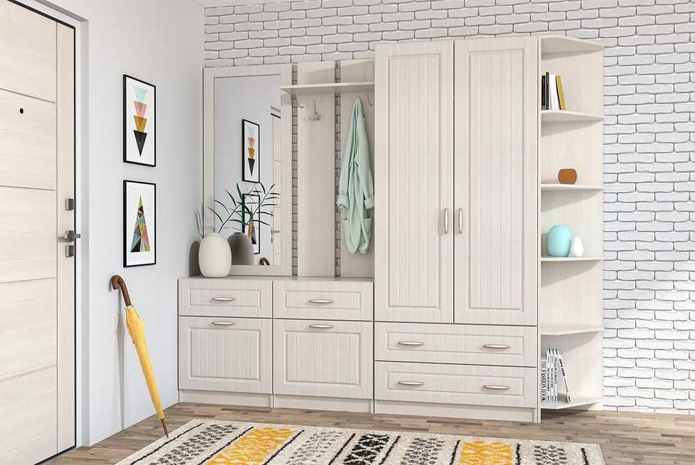 Угловая прихожая - отличное решение для небольшой комнаты. Прямые линии на фасаде подчеркивают достоинство и изящество мебели. Благодаря разнообразию шкафов, современная прихожая Бостон будет очень функциональна и удобна.