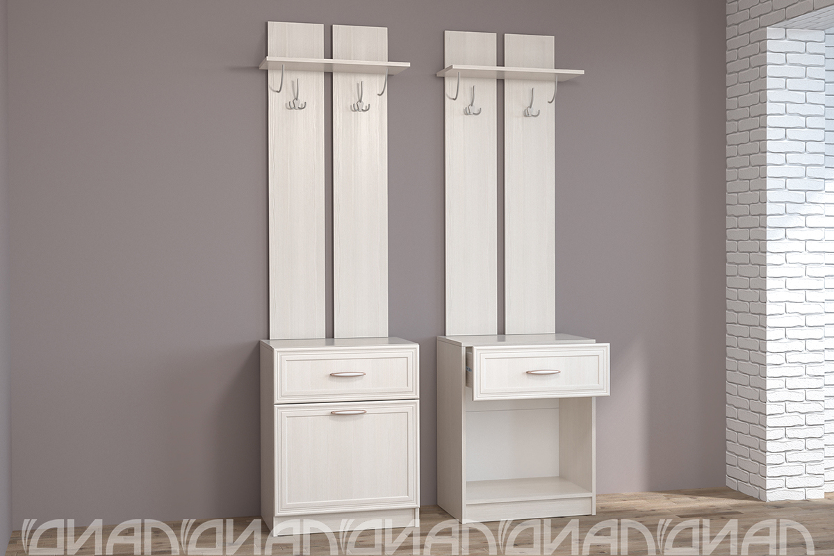 Удобный предмет мебели в современном стилей, подойдет под любой интерьер прихожей. В нижнюю тумбу можно ставить обувь, что делает данный тумбу еще более функциональным.