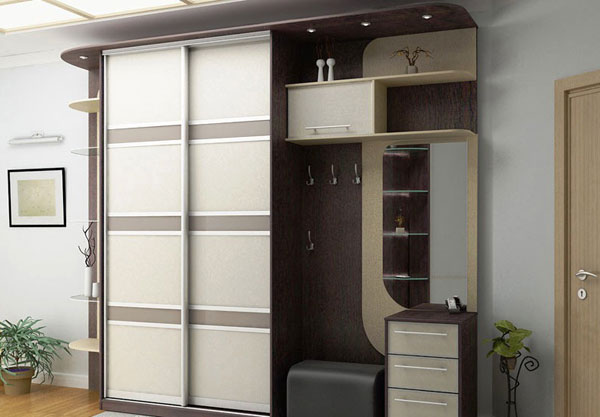 Прихожие, оборудованные подсветкой, способствуют визуальному расширению пространства, делают помещение просторнее и светлее. Подсветкой может оборудоваться весь фасад, часть поверхности или стенка. Дизайн прихожей с подсветкой могут дополнить мозаичные вставки стекла, фацеты и нанесенные изображения. Особенно стильно выглядят в интерьере модели с неоновой подсветкой.