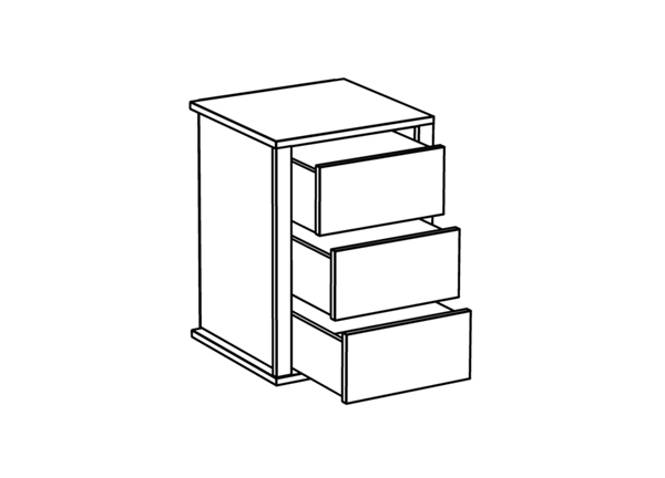 Комод «Fly» предназначен для установки в любой проем шкафа. Модель имеет три выдвижных ящика. Материал изготовления – ламинированное ДСП черного цвета.