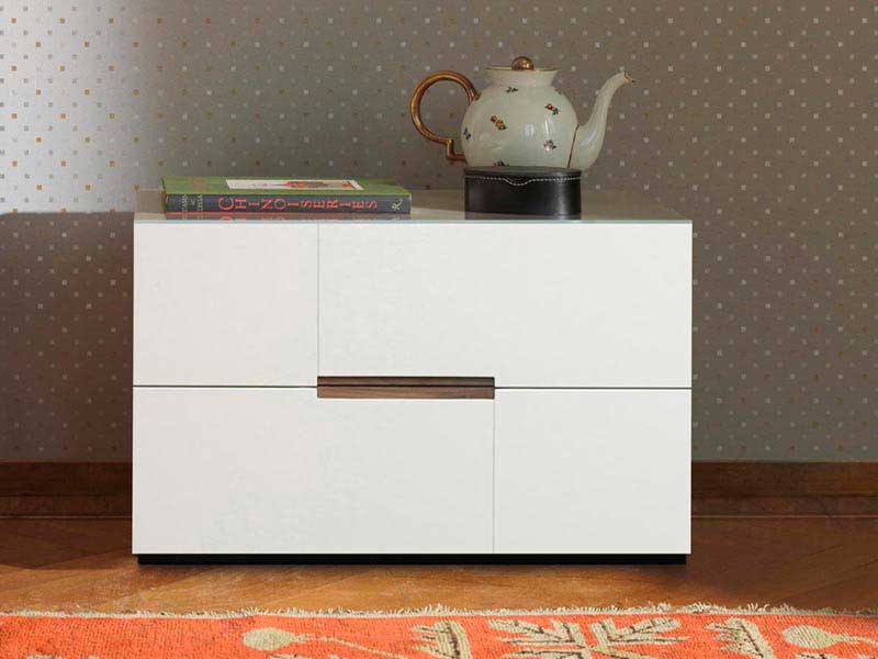 Небольшая прикроватная тумбочка из ДСП Egger будет занимать важное место у изголовья кровати. Фасад модели выполнен из крашенного МДФ с оригинальной фрезерованной ручкой, которая позволяет открывать все полки. Воздушный белый цвет будет особенно гармонично смотреться в светлом интерьере спальной комнаты.