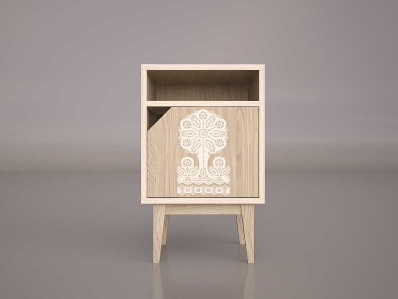 Компактная прикроватная тумба выполнена из натурального массива. Распашная створка модели украшена оригинальным узором. За счет высоких ножек тумбочка выглядит стильно и изящно.