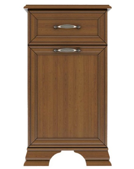 Узкая высокая тумба Тиффани с ящиком белорусской мебельной фабрики АНРЭКС. Небольшая тумба Тиффани из новой коллекции корпусной мебели в цвете каштан. Она подойдет для интерьера жилой комнаты или спальни. В гостиной эта тумбочка может пригодится для хранения посуды и столовых приборов.