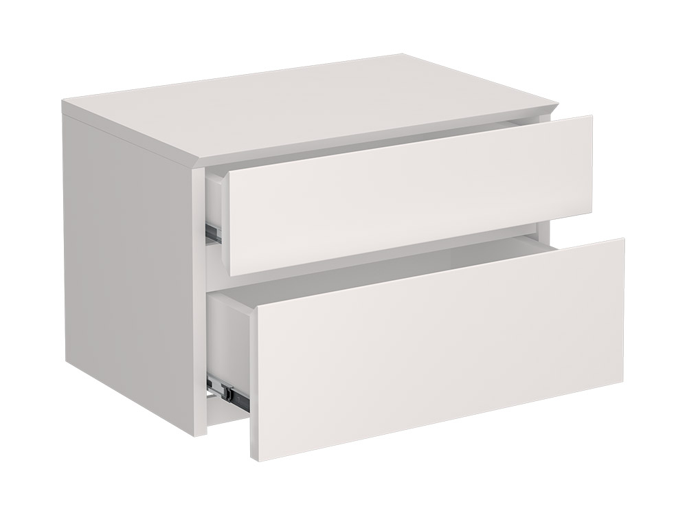 Тумба оборудована небольшим выдвижным ящиком и открытой нишей.