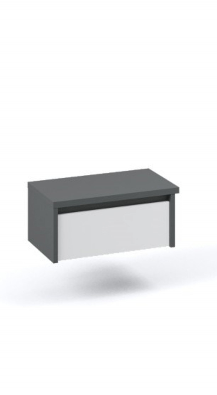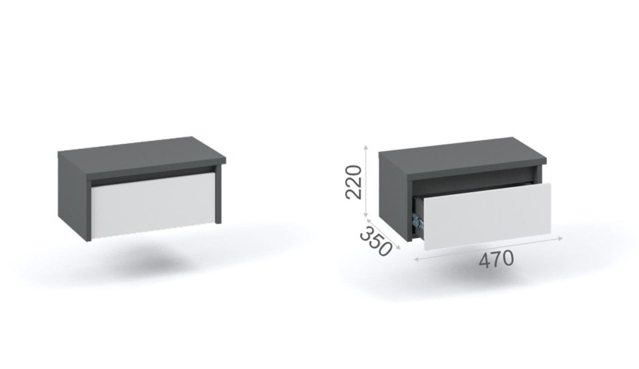 Тумба оборудована небольшим выдвижным ящиком и открытой нишей.