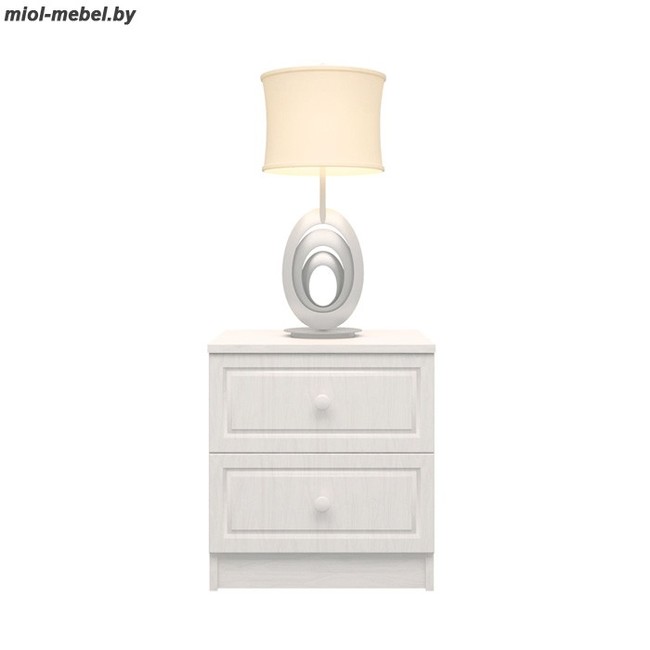 код 90076Компактная тумбочка в светлом корпусе на два выдвижных ящика.