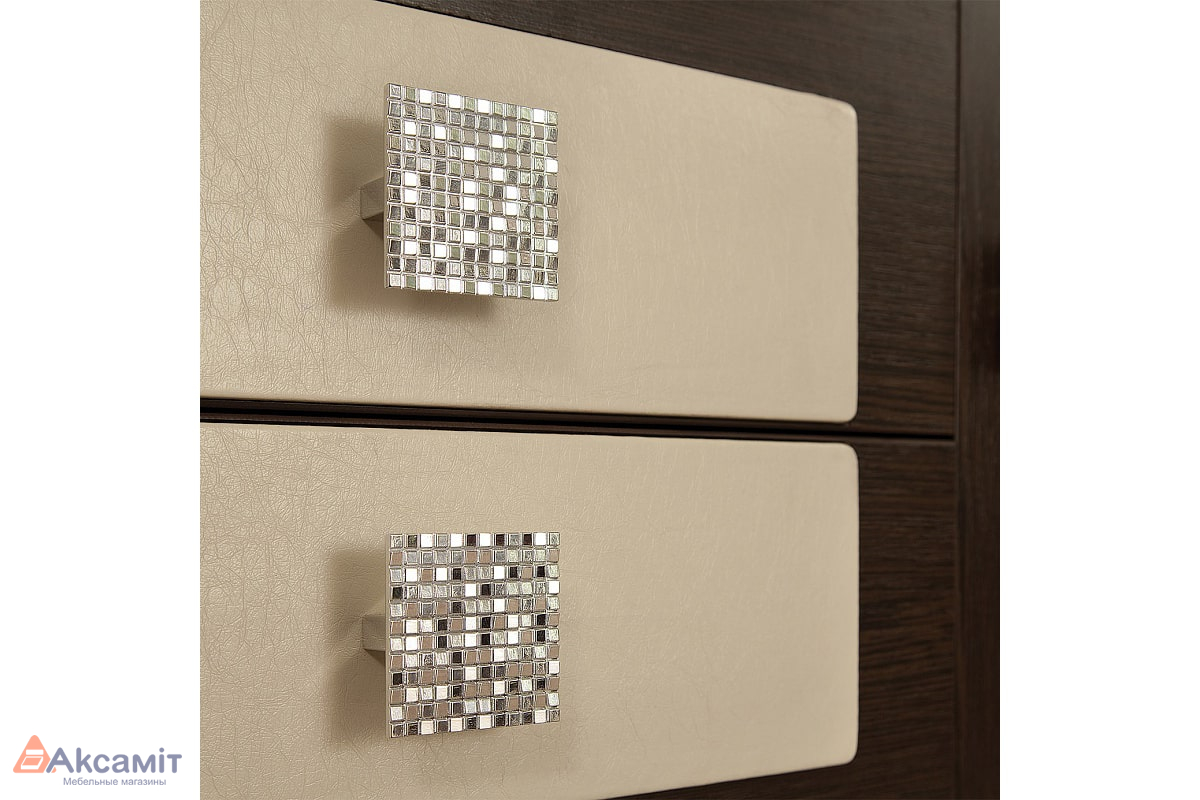 Эргономичная по габаритам 4 Тумба прикроватная совмещает все достоинства и системы хранения, и прикроватного столика, и важной детали интерьера. Ящики тумбы со вставками из винилискожи и мозаичными ручками. Часто используемая поверхность верхней крышки 4 Тумбы прикроватной выполнена из ЛДСП 22 мм.