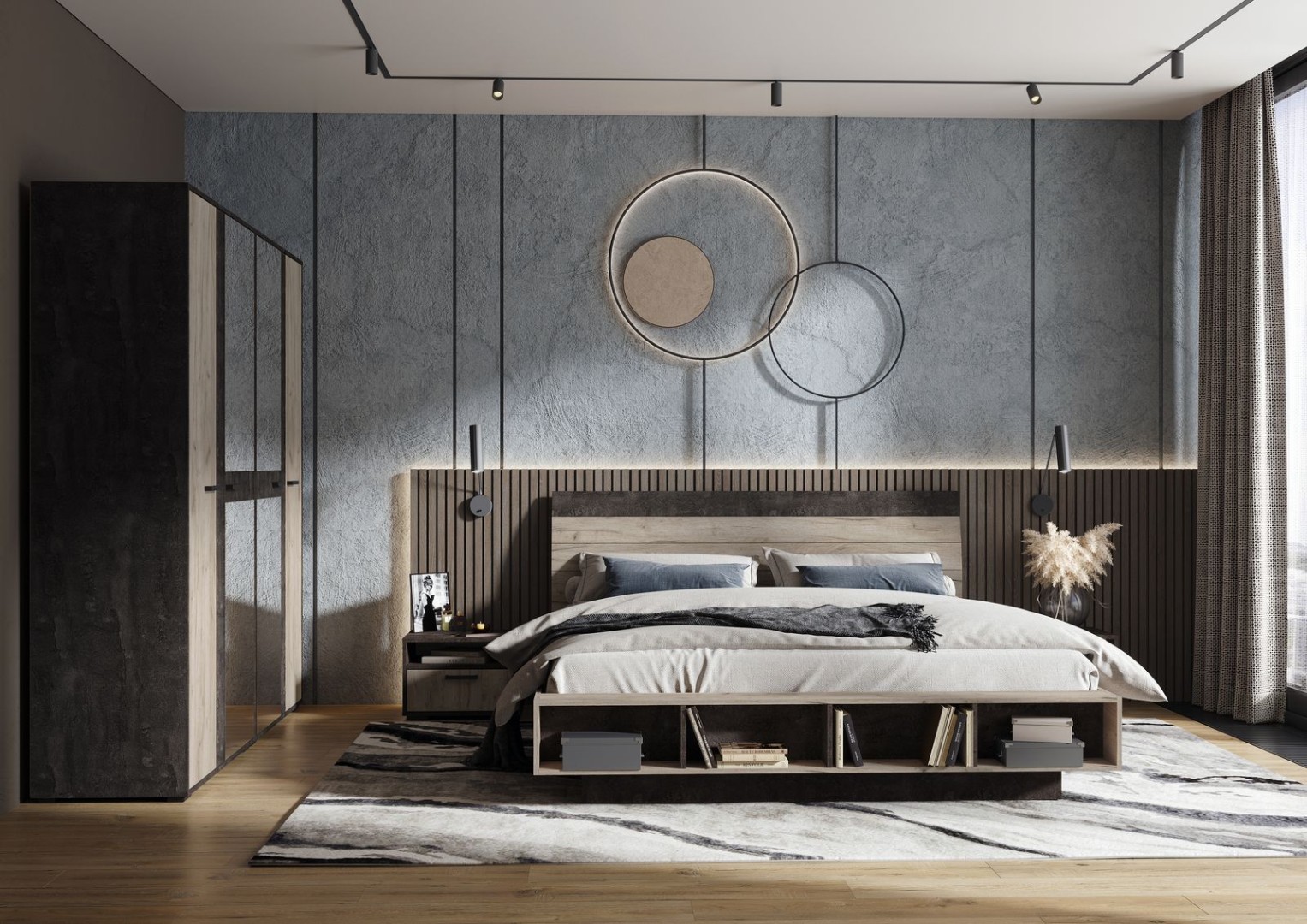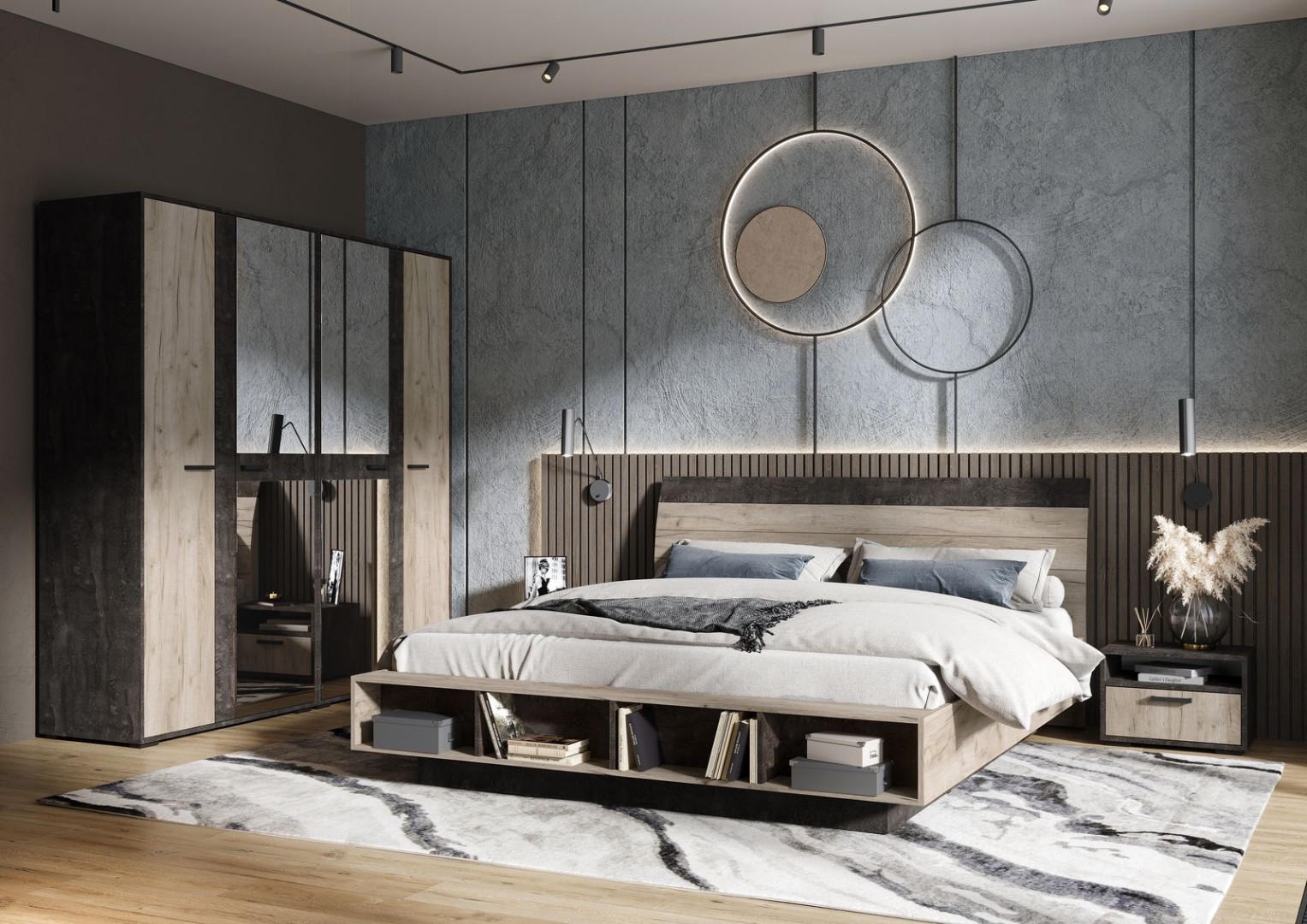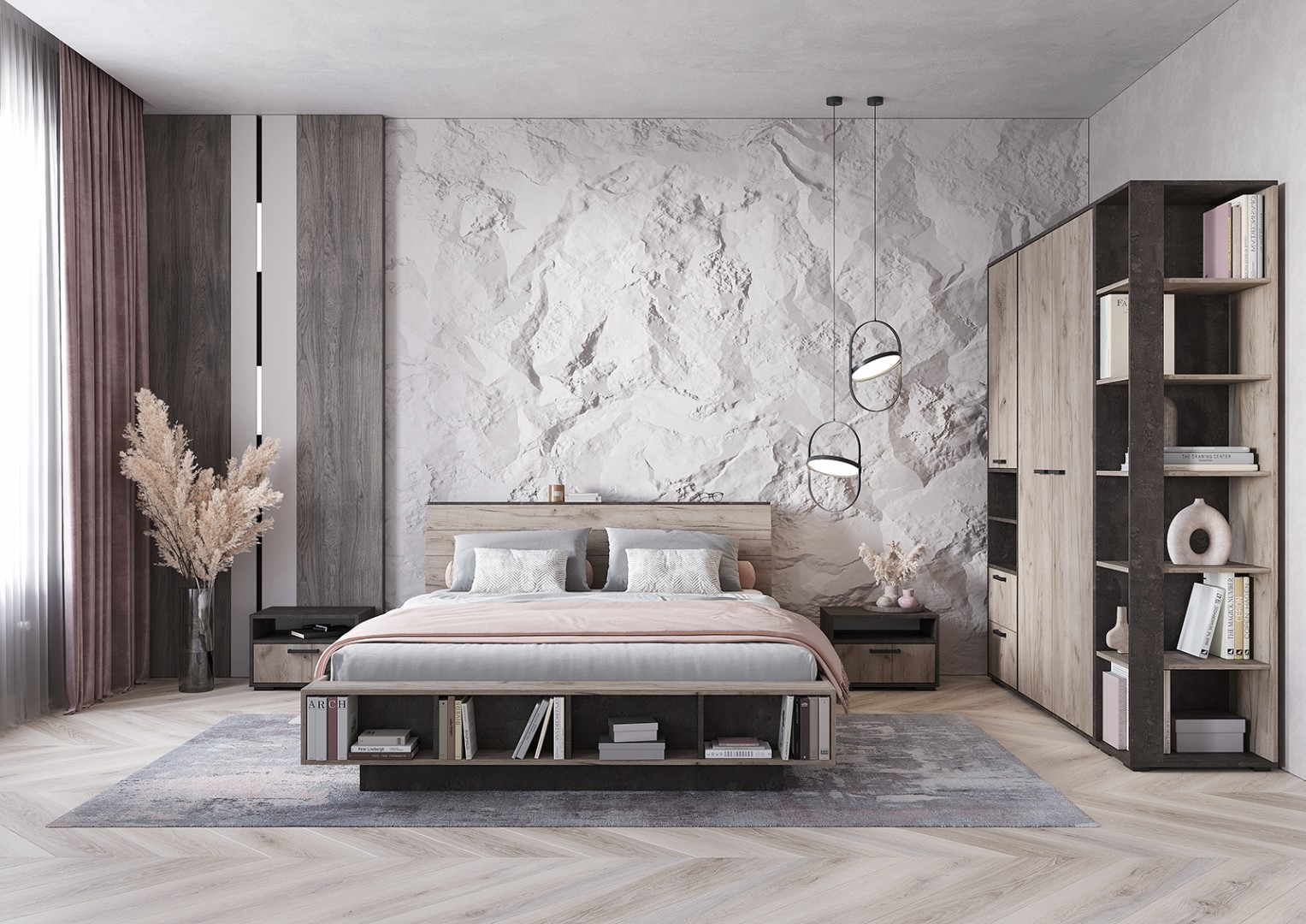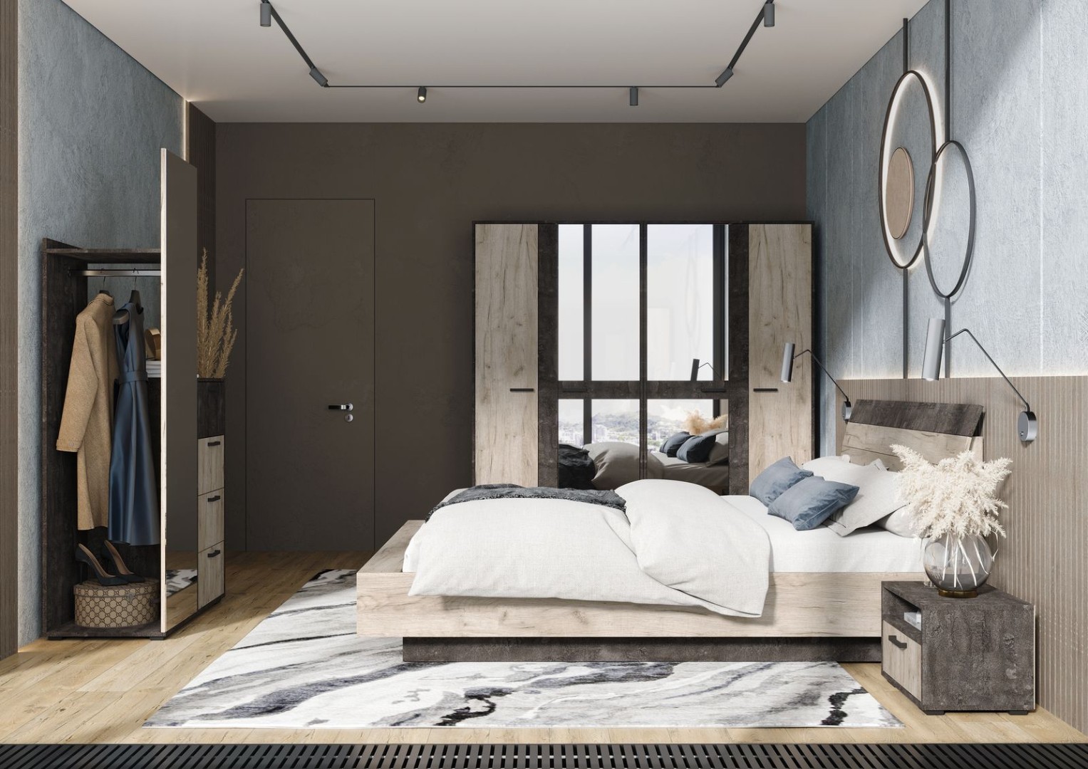 Тумба прикроватная «Эдинбург ТБ 01» Крафт серый / Железный камень (Стендмебель)