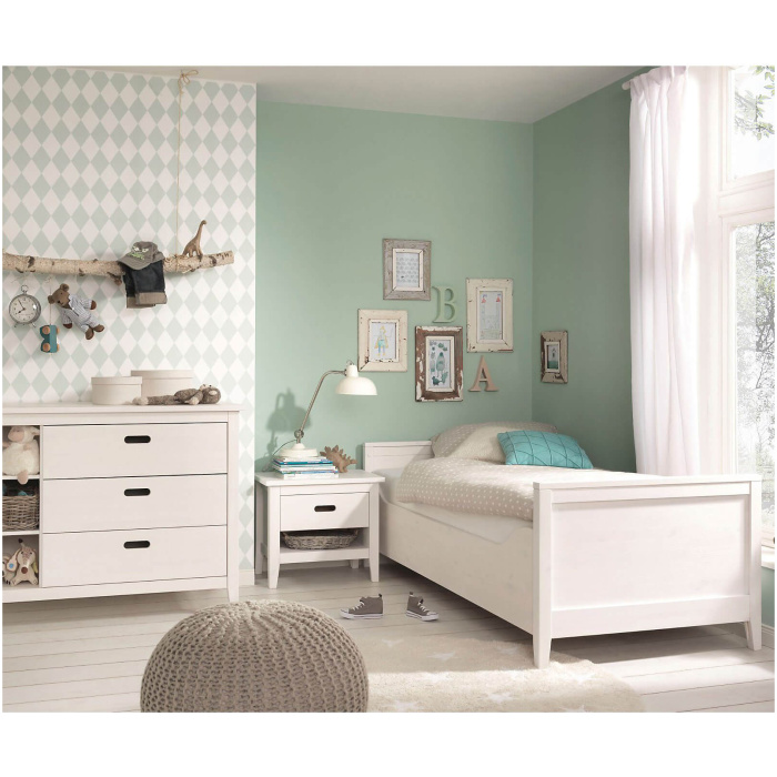 Тумба прикроватная из массив сосны «Хельсинки 11» (Белый воск/антик)